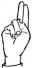 На ћирилици написано ЛЕНА ДАБИЋ састоји се из 9 слова [?]. Исписано ћириличном једноручном азбуком за глувонеме: